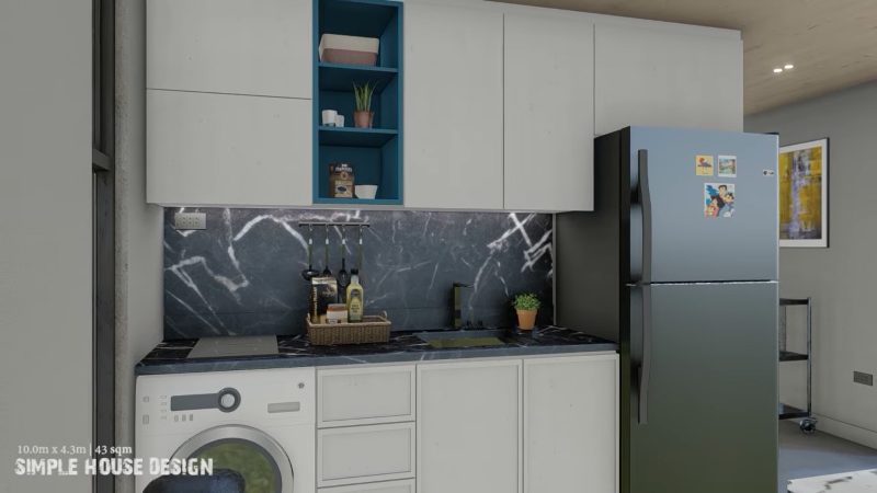 While the exterior exudes simplicity, the interior, on the other hand, is an expression of elegance despite its size. Likewise, this home design has a friendly exterior façade and is complemented by a graceful interior concept. Both sides communicate well considering the grace of concepts, color choice, and workmanship. The entire interior is elegant in a mix of white, grey, and brown including the furniture. As can be seen, the spaces shine outstandingly in a well-defined layout and arrangement.