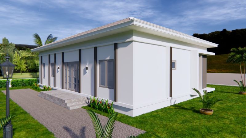 Probably, one of the most dazzling features of this splendid design is the cross hip roof assembly with grey tiles and white ceilings. The roof looks perfect for this design, yet a shed hip roof will equally deliver an amazing appeal.