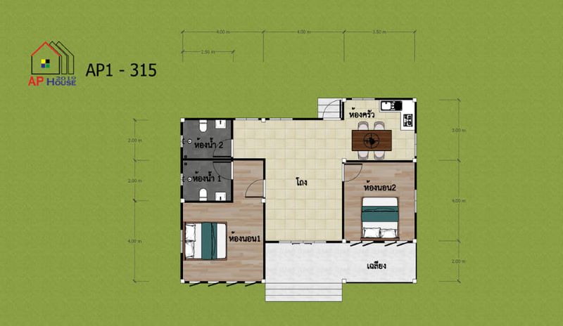 You can access the living spaces from the porch through the glass doors. Directly ahead of you lies an amazing great room that feels comfortable with lots of light and air. The living room is open to the dining area and kitchen that settles at the middle of the plan. Meanwhile, the living room is flanked by two bedrooms. The master’s bedroom with a private ensuite sits on the left and the secondary bedroom on the right,