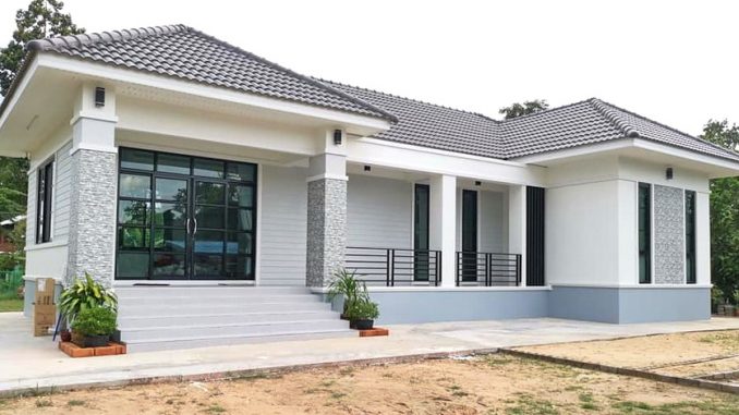 Presently. there are lots of reasons of choosing modern home plan designs. In fact, we are in a stage and time where space, energy, and privacy are difficult to combine in one. Nevertheless, contemporary designs can offer space, light, and comfort and additionally create an energy-efficient and friendly environment. You will love to experience the modern lifestyle of this splendid modern house plan, which is stunning on both sides. You’ll appreciate the open ambiance enhanced by glass doors and windows that make the inside rooms sunny and bright. This graceful bungalow house in a versatile blend of white, grey, and silver-grey hues generates a fascinating façade.