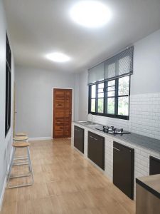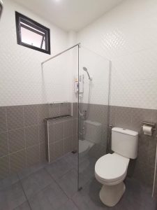 You can effortlessly live in a house where comfort is given attention in both the exterior and interior spaces. In fact, the cozy outdoor space offers a great amount of natural air that freely penetrates the interior. Similarly, the glass doors and windows in green tint transmit lots of natural air and light keeping the interior at a pleasant level.