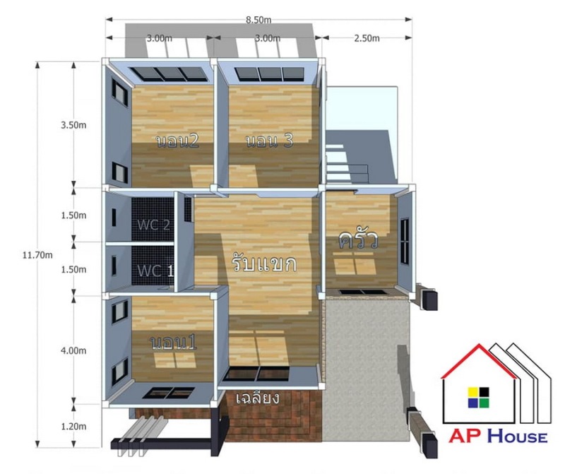 The assembly and construction of the entire exterior façade of this house are very tidy and refined. It stands in a pleasant surrounding with a dimension of 11.70 x 8.5 meters or approximately 100.0 sq. meters total floor area A stunning residence, it has the following specifications – porch and terrace, living room, dining room, kitchen, three bedrooms, two bathrooms, wash area and a car park.
