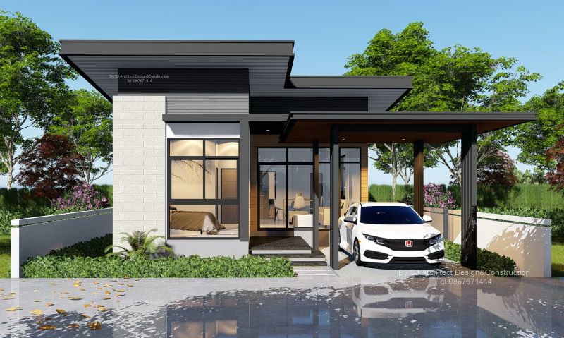 Undoubtedly, one eye-catching feature of this house is the combination of flat and shed roofs with grey tiles, brown ceilings, with an average pitch slope. Meanwhile, it’s amazing to observe the spotless exterior walls in classic white paint. The tidy and refined workmanship of the entire house is beyond description.
