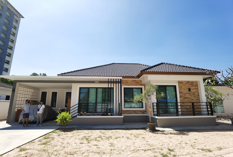 The refined workmanship and styling are visible from the prominent, average-pitched cross-hip roof with grey-colored tiles complemented by cream-colored ceilings. Meanwhile, you will be enthralled with the exterior walls in mineral plaster finish in cream and beige shades. Definitely, it complements well with the grace of the entire elevation which creates an appealing atmosphere.