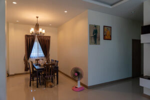 The interior focuses on grace and comfort. As can be seen, the space is neat and well-organized too, with all the furniture and decor in it. You will also love the overall concept of the entire space, which bursts elegantly in a uniform cream tone from floor marble tiles, interior walls, and ceilings. The entire concept is a nod to the modern setting.