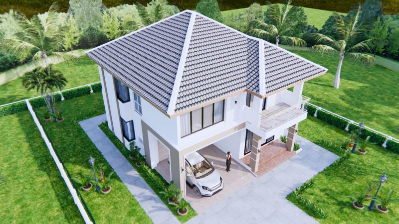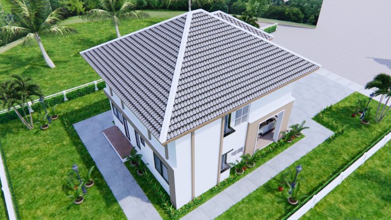 Probably, one of the most outstanding features of this house is the well-designed cross hip roof assembly with grey-colored tiles and ceilings. Meanwhile, the exterior walls in spotless white tone exude class and finesse.