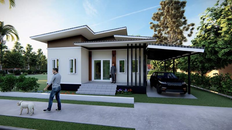 Incredibly impressive with this modern design is the well-designed cross hip roof assembly with grey-colored tiles and white ceilings. The elegant roof assembly is matched by the spotless exterior walls in a white tone. As can be seen, the entire house that showcases class and finesse is beyond description.