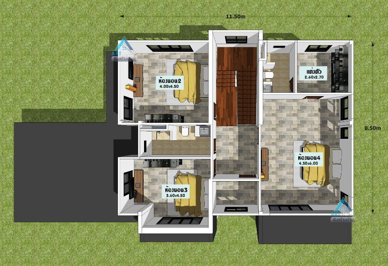 The second floor features a hallway that connects to every space on the floor. It features three bedrooms and two bathrooms. The master’s bedroom with a complete closet and ensuite occupies the entire right section of the floor. On the other hand, the secondary bedrooms with a bathroom between them sit side by side on the left portion.
